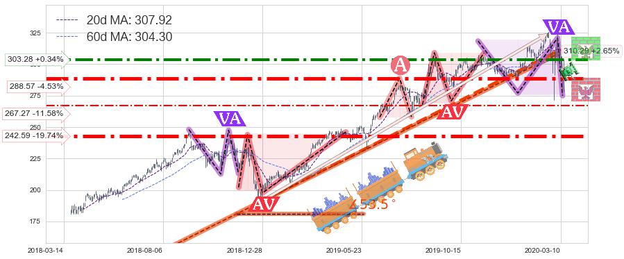 ♘ 阻力价格位303.28,可信任强度72.97%,距离最后交易2020-03-13形成的收盘价格302.27相差 +0.34%