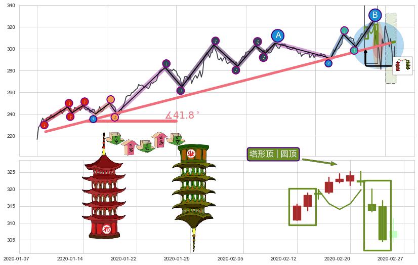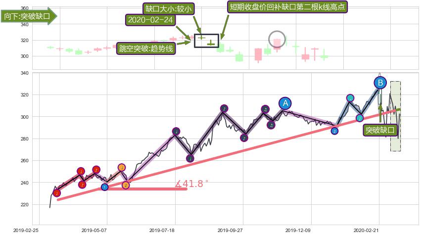➢ 收盘价(2020-03-04: 320.74 )→回踩→第二根k线高点(2020-02-24: 320.00 )