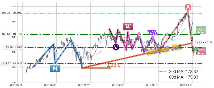 ♘ 阻力价格位163.54,可信任强度88.07%,距离最后交易2020-03-13形成的收盘价格147.78相差 +10.67%