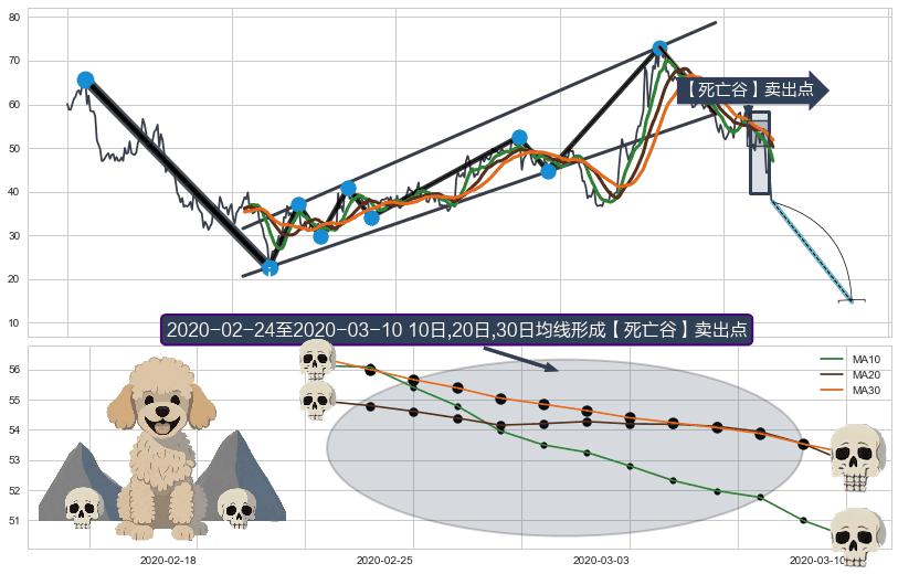 | 3 🅚:下跌螺旋桨 ➕ 🎢:【死亡谷】卖出点均线组合卖出点信号形成后,猜想后续破位下跌,沿着向下的尖头三角下跌 ☞ 看空信号 ⇥ 【均线】交织【🅚线】⇥ 综合量化分数: 34 | > |