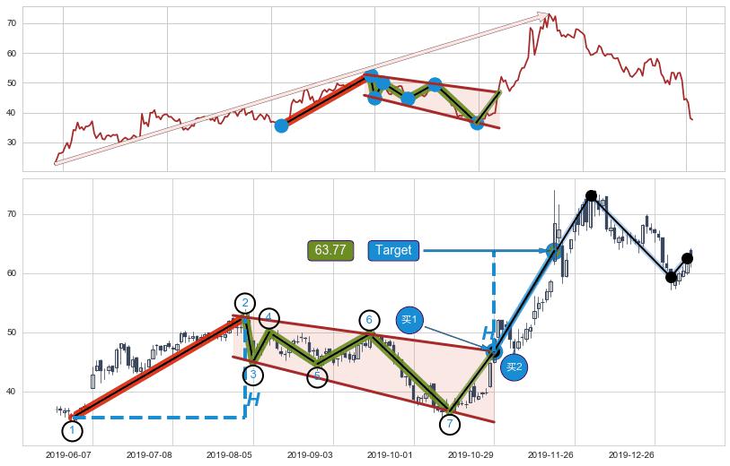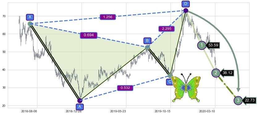 ➣ 已完成【蝴蝶】形态起点X: 2018-07-13, 终点D: 2019-12-03, 共351交易日