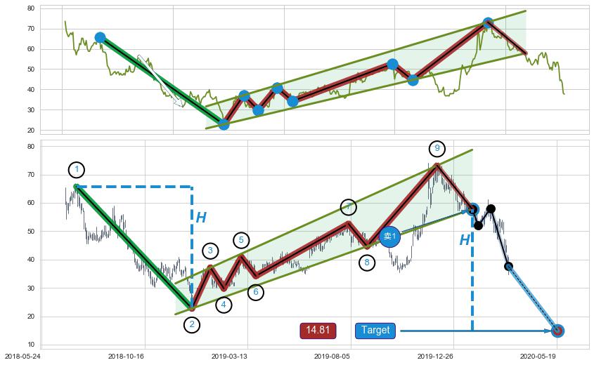 ➣ 最小中继整理涨幅→𝐇: 16.99 (𝐇旗杆的长度:旗杆起点→顶点)