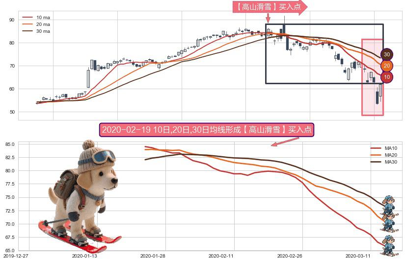 形态多维评估: ⚀ 2020-01-23日-2020-03-13日显现 10日-20日-30日均线 【高山滑雪】买入点 看多信号,后市看涨,买入