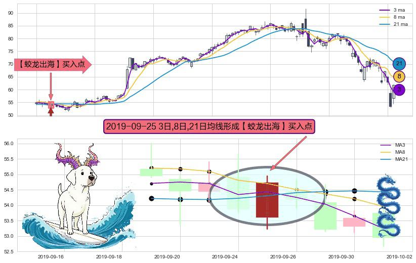 形态多维评估: ⚀ 2019-09-25日显现 3日-8日-21日均线 【蛟龙出海】买入点 看多信号,后市看涨,买入
