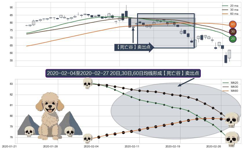 形态多维评估: ⚀ 2020-02-05-日至2020-02-27-日显现 20日-30日-60日均线 【死亡谷】卖出点 看空信号,后市看跌,卖出
