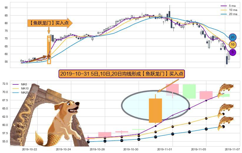 形态多维评估: ⚀ 2019-10-31日显现 5日-10日-20日均线 【鱼跃龙门】买入点 看多信号,后市看涨,买入