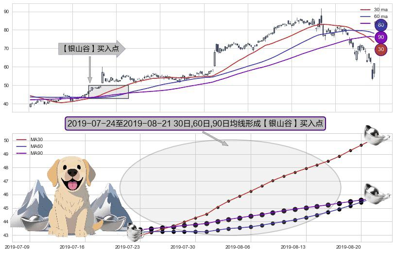 形态多维评估: ⚀ 2019-07-25-日至2019-08-21-日显现 30日-60日-90日均线 【银山谷】买入点 看多信号,后市看涨,买入