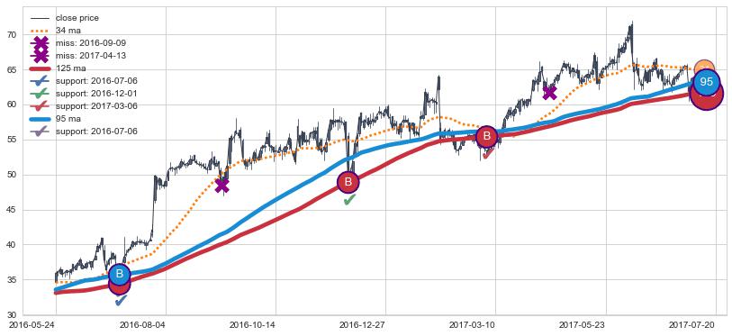 上涨趋势2016-05-24-2017-07-20,均线125, 95确认关键支撑3处
