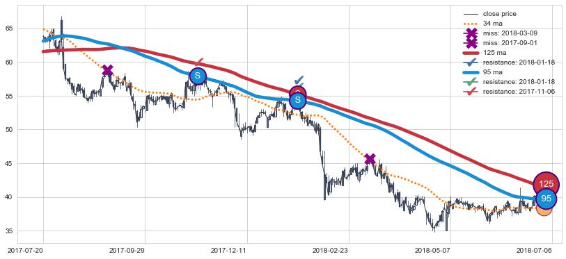 下跌趋势2017-07-20-2018-07-06,均线125, 95确认关键阻力2处