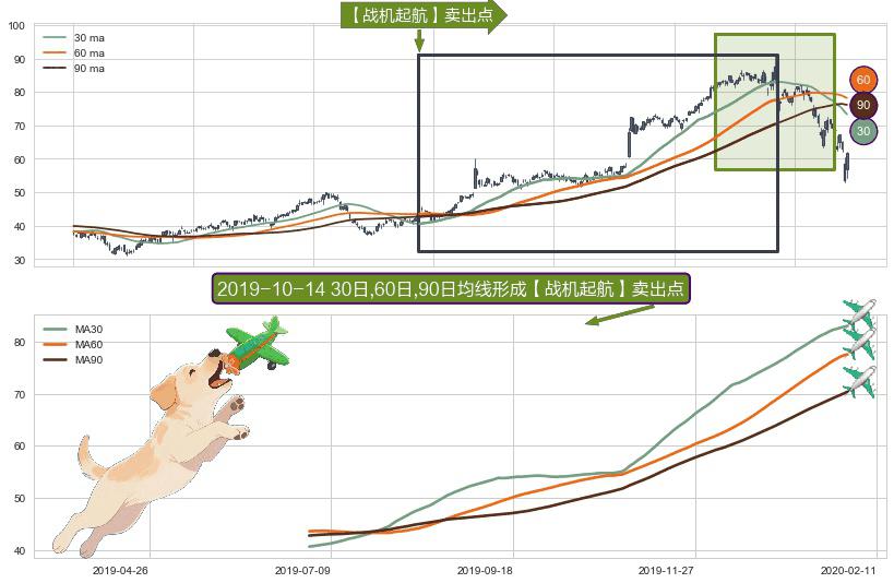 形态多维评估: ⚀ 2019-06-28日-2020-01-30日显现 30日-60日-90日均线 【战机起航】卖出点 看空信号,后市看跌,卖出