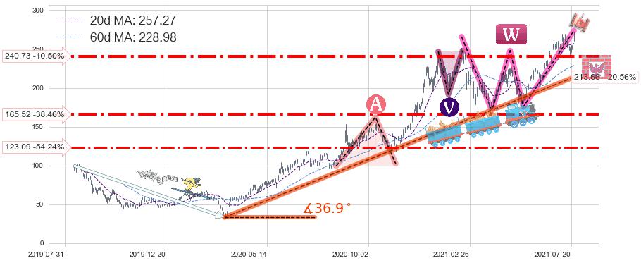 ♘ 支撑价格位240.73,可信任强度75.60%,距离最后交易2021-07-23形成的收盘价格268.96相差 -10.50%