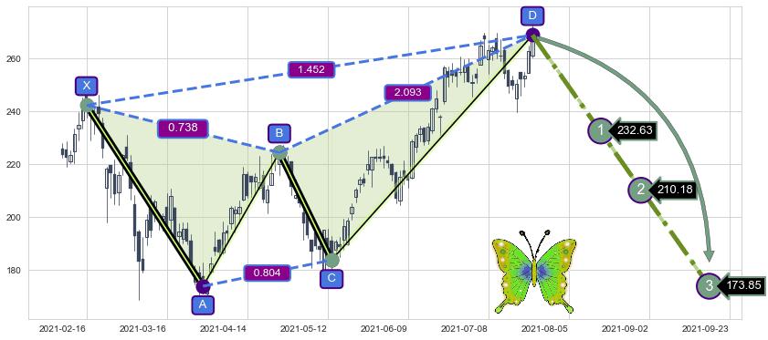 ➣ 已完成【蝴蝶】形态起点X: 2021-02-16, 终点D: 2021-07-23, 共112交易日