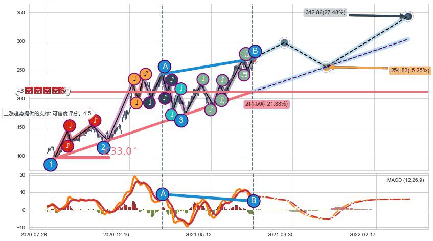 ♘ 支撑价格位232.94,可信任强度66.14%,距离最后交易2021-07-23形成的收盘价格268.96相差 -13.39%