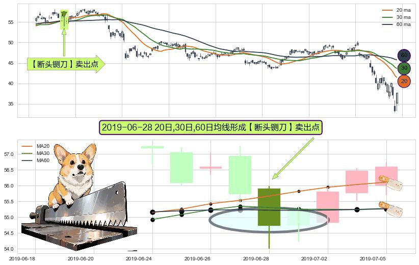 形态多维评估: ⚀ 2019-06-28日显现 20日-30日-60日均线 【断头铡刀】卖出点 看空信号,后市看跌,卖出