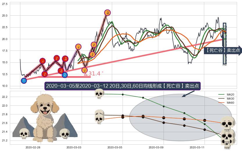 ➣ 2018-06-19-2020-03-06上升趋势存在反转[风险],其原上升趋势的支撑位(20.04)已破位[强阻力信号],原上升趋势角度: 31.4˚