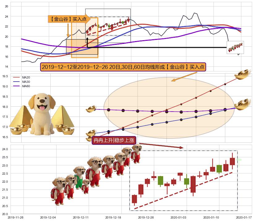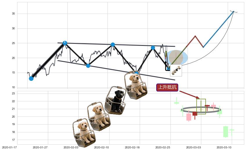 ➢ 高点影线(2020-02-26: 22.50 )→回踩→第二根k线高点(2020-02-24: 22.20 )