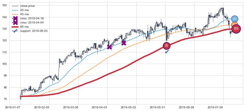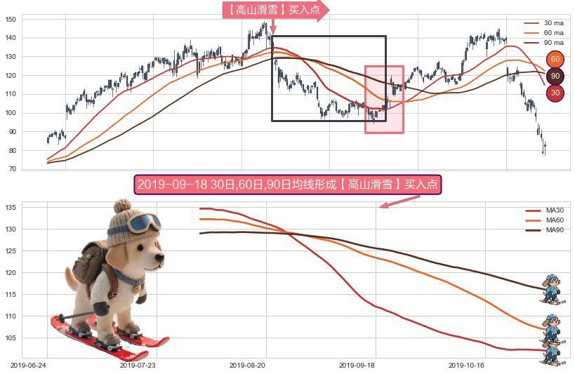 ⚀ 2019-08-02日-2019-10-31日显现 30日-60日-90日均线 【高山滑雪】买入点 看多信号,后市看涨,买入