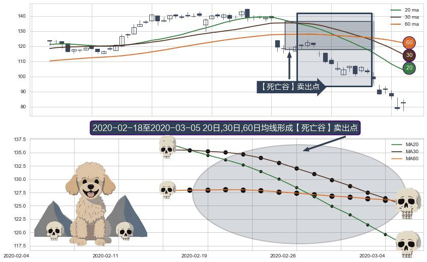 ⚀ 2020-02-19-日至2020-03-05-日显现 20日-30日-60日均线 【死亡谷】卖出点 看空信号,后市看跌,卖出