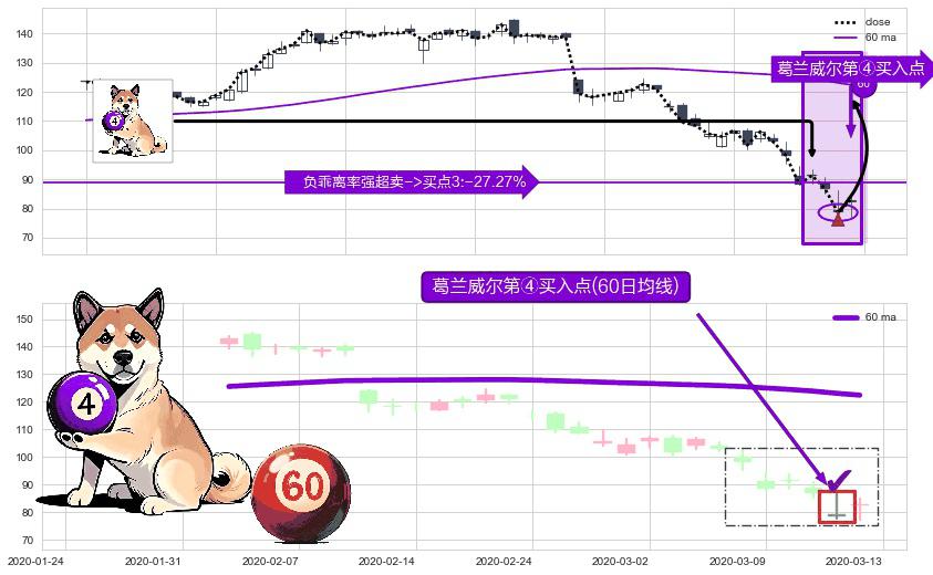 ⚀ 2020-03-12-日显现 葛兰威尔均线 60日均线 第④买入点 下降趋势均值回复的短线反弹信号,后市看涨,买进信号