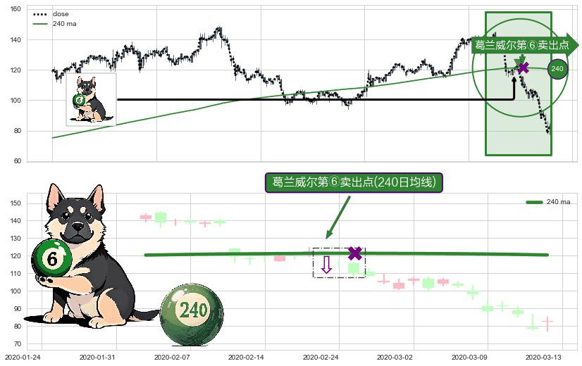 ⚀ 2020-02-21-日显现 葛兰威尔均线 240日均线 第⑥卖出点 走势反转见顶信号,后市看跌,卖出信号