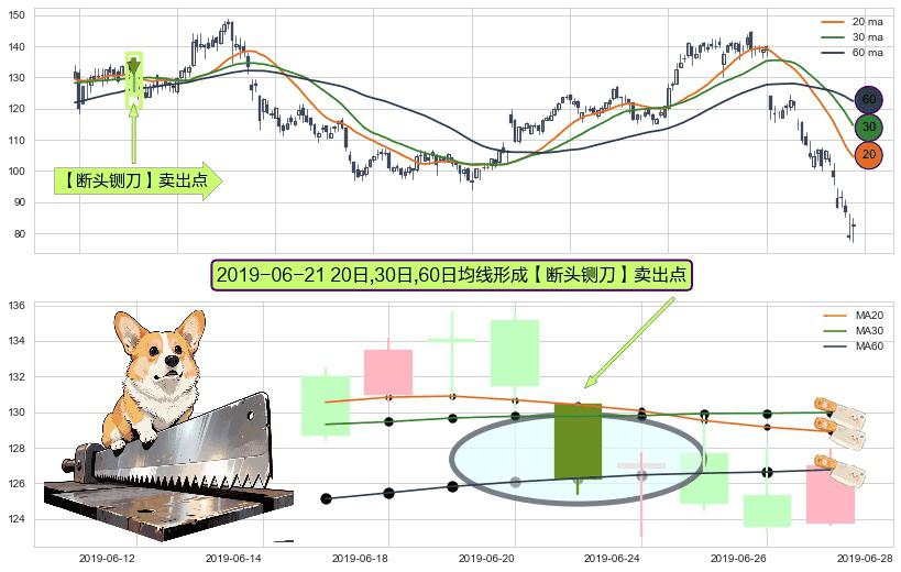 ⚀ 2019-06-21日显现 20日-30日-60日均线 【断头铡刀】卖出点 看空信号,后市看跌,卖出