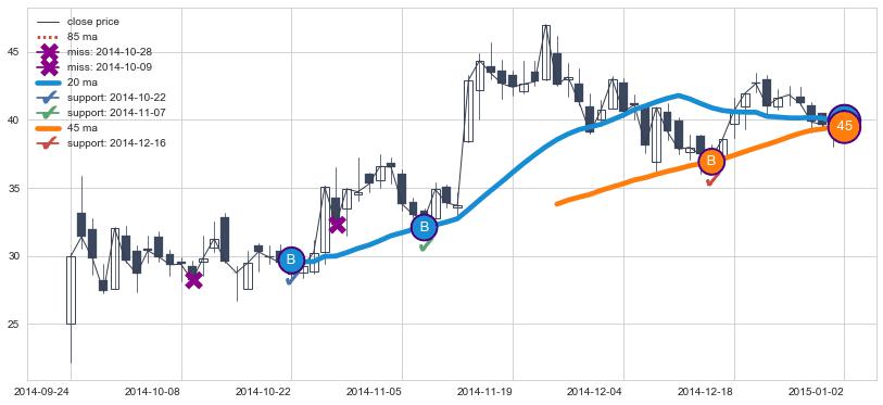 2014-09-24至2015-02-09 慢线与快线呈多头排列, 慢线与快线接触少,无缠绕
