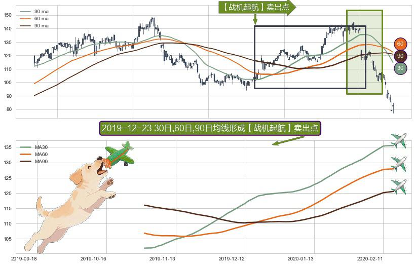 ⚀ 2019-10-31日-2020-02-14日显现 30日-60日-90日均线 【战机起航】卖出点 看空信号,后市看跌,卖出