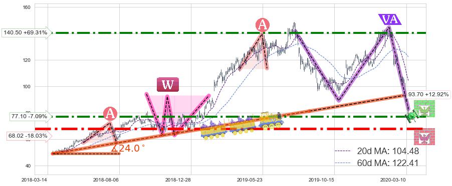 ♘ 阻力价格位77.10,可信任强度75.63%,距离最后交易2020-03-13形成的收盘价格82.98相差 -7.09%