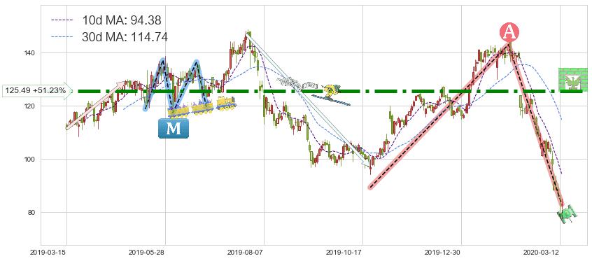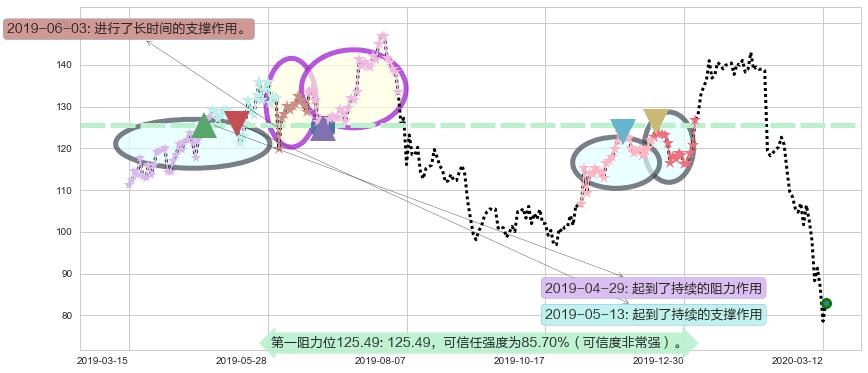 ♘ 阻力价格位125.49,可信任强度85.70%,距离最后交易2020-03-13形成的收盘价格82.98相差 +51.23%