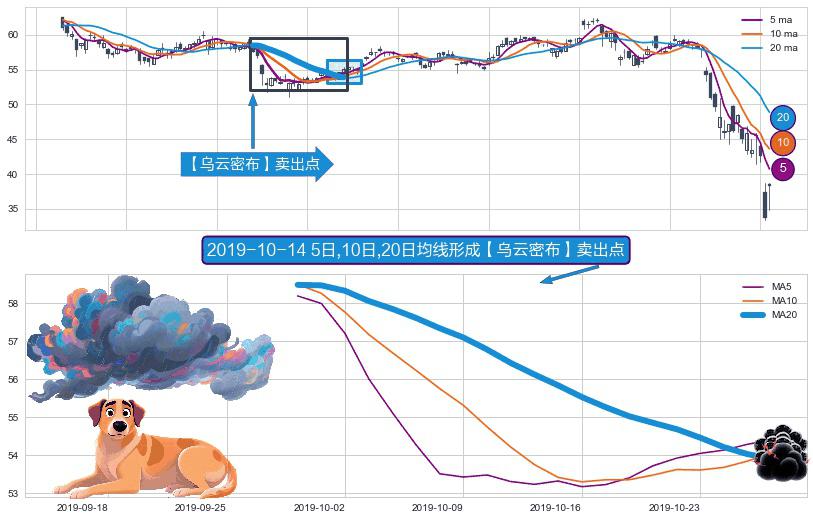 ⚀ 2019-09-30日-2019-10-28日显现 5日-10日-20日均线 【乌云密布】卖出点 看空信号,后市看跌,卖出