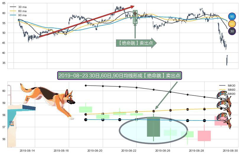 ⚀ 2019-08-23日显现 30日-60日-90日均线 【绝命跳】卖出点 看空信号,后市看跌,卖出
