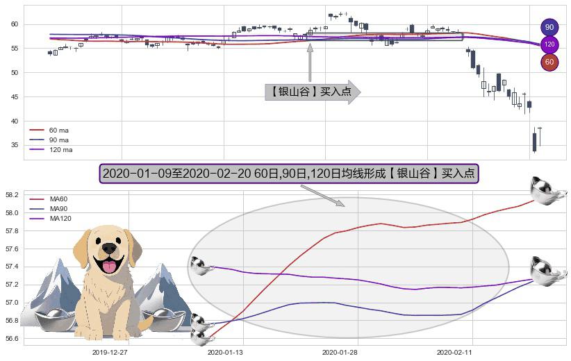 ⚀ 2020-01-10-日至2020-02-20-日显现 60日-90日-120日均线 【银山谷】买入点 看多信号,后市看涨,买入