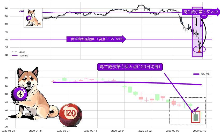 ⚀ 2020-03-12-日显现 葛兰威尔均线 120日均线 第④买入点 下降趋势均值回复的短线反弹信号,后市看涨,买进信号