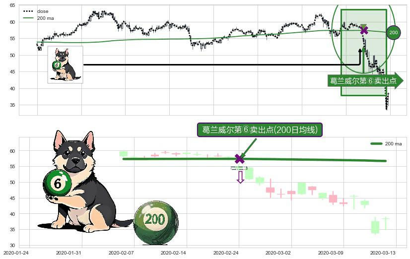 ⚀ 2020-02-24-日显现 葛兰威尔均线 200日均线 第⑥卖出点 走势反转见顶信号,后市看跌,卖出信号