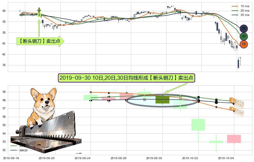 ⚀ 2019-09-30日显现 10日-20日-30日均线 【断头铡刀】卖出点 看空信号,后市看跌,卖出