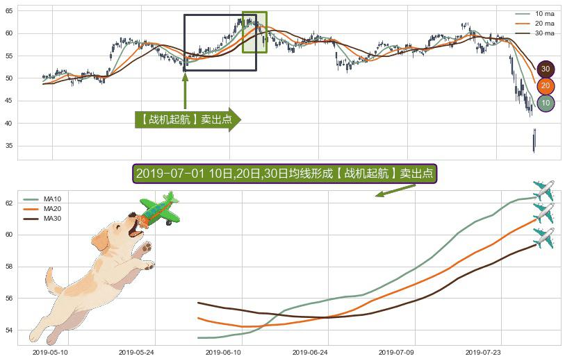 ⚀ 2019-06-03日-2019-07-29日显现 10日-20日-30日均线 【战机起航】卖出点 看空信号,后市看跌,卖出