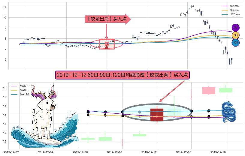 形态多维评估: ⚀ 2019-12-12日显现 60日-90日-120日均线 【蛟龙出海】买入点 看多信号,后市看涨,买入