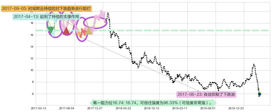 2017-06-23: 第一阻力位16.74有效抑制了下跌浪,成功阻止了价格的继续下跌。