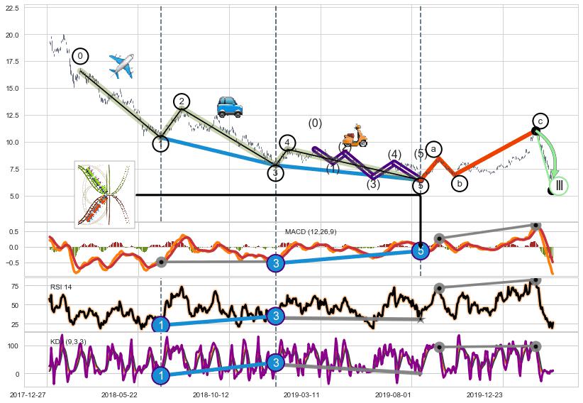 ➣ a,c调整浪MACD, RSI, KDJ走势都【未出现】背离,abc走势延续, 5浪反转概率增强