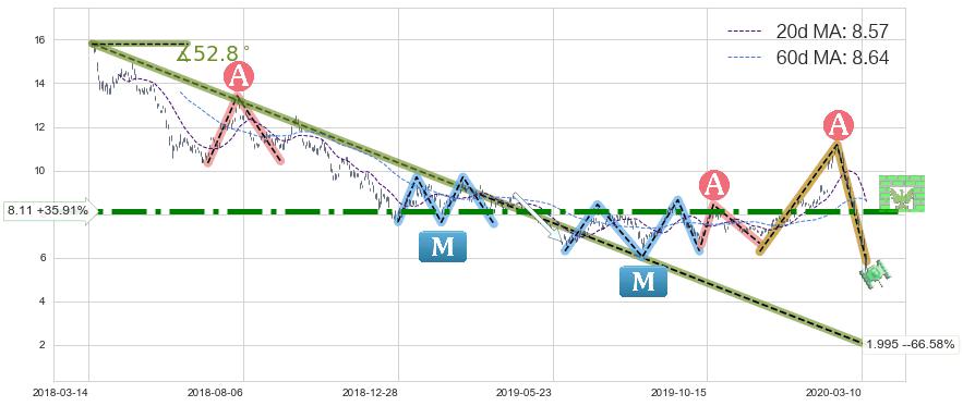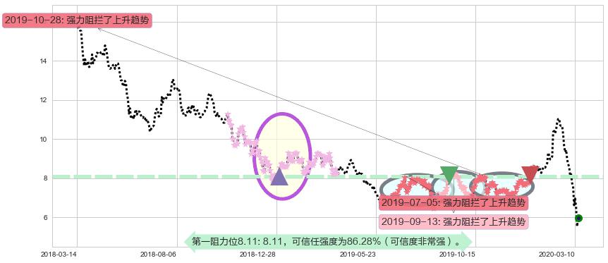 ♘ 阻力价格位8.11,可信任强度86.28%,距离最后交易2020-03-13形成的收盘价格5.97相差 +35.91%