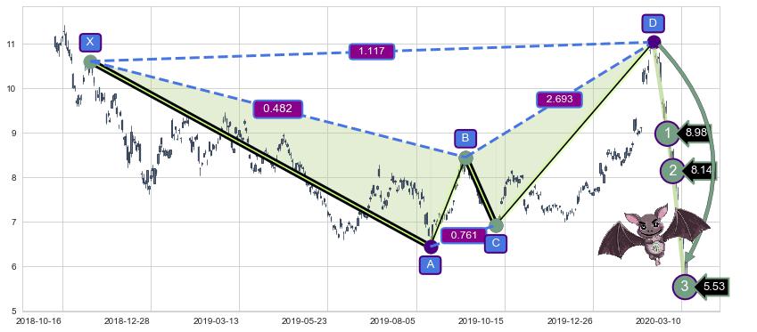 ➣ 已完成【蝙蝠】形态起点X: 2018-11-07, 终点D: 2020-02-14, 共319交易日