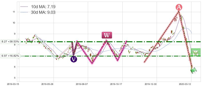 ♘ 阻力价格位8.27,可信任强度81.91%,距离最后交易2020-03-13形成的收盘价格5.97相差 +38.53%