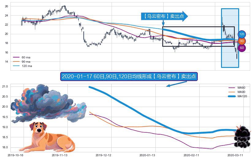 ⚀ 2019-11-27日-2020-03-09日显现 60日-90日-120日均线 【乌云密布】卖出点 看空信号,后市看跌,卖出