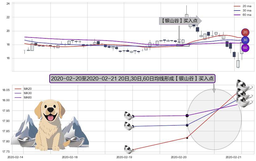 ⚀ 2020-02-21-日至2020-02-21-日显现 20日-30日-60日均线 【银山谷】买入点 看多信号,后市看涨,买入
