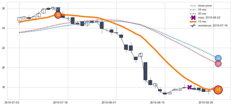 ⚀ 2019-07-17日-2019-08-27日显现 10日-20日-30日均线 【高山滑雪】买入点 看多信号,后市看涨,买入