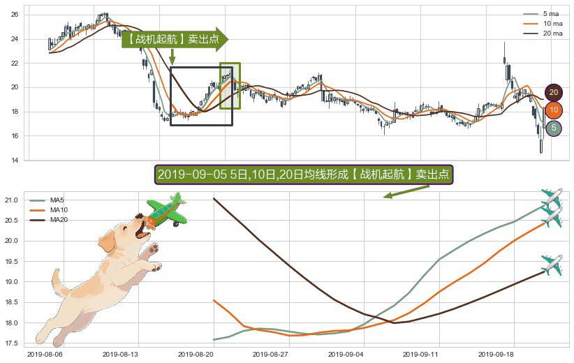 ⚀ 2019-08-20日-2019-09-20日显现 5日-10日-20日均线 【战机起航】卖出点 看空信号,后市看跌,卖出