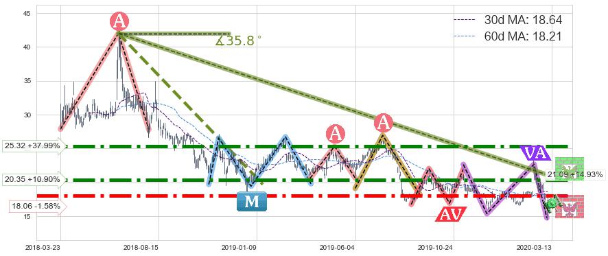♘ 支撑价格位18.06,可信任强度89.28%,距离最后交易2020-03-13形成的收盘价格18.35相差 -1.58%