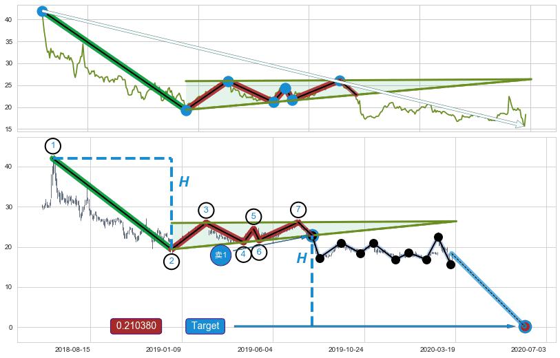 ➢ AI预测: 假定反转启动后, 第❷目标位置(2020-10-01, 18.97)