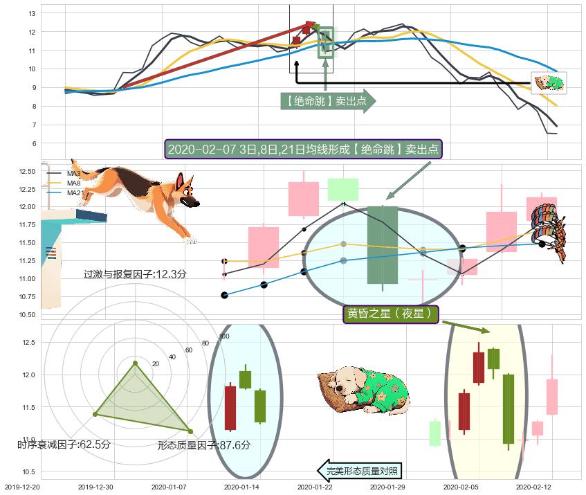| 2 🅚:塔形顶 | 圆顶 ➕ 🎢:【绝命跳】卖出点均线组合卖出点信号形成后,猜想后续向下脱离整理形态,持续破位下行 ☞ 看空信号 ⇥ 【均线】交织【🅚线】⇥ 综合量化分数: 47 | > |