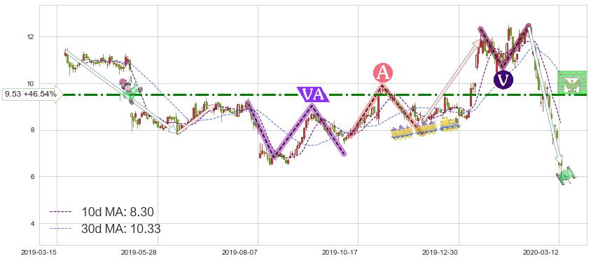 ♘ 阻力价格位9.53,可信任强度68.20%,距离最后交易2020-03-13形成的收盘价格6.50相差 +46.54%